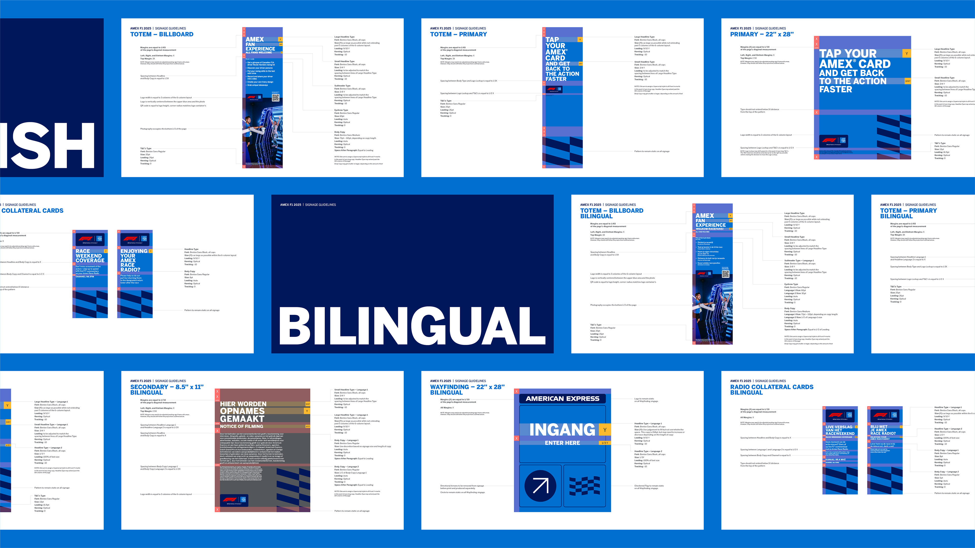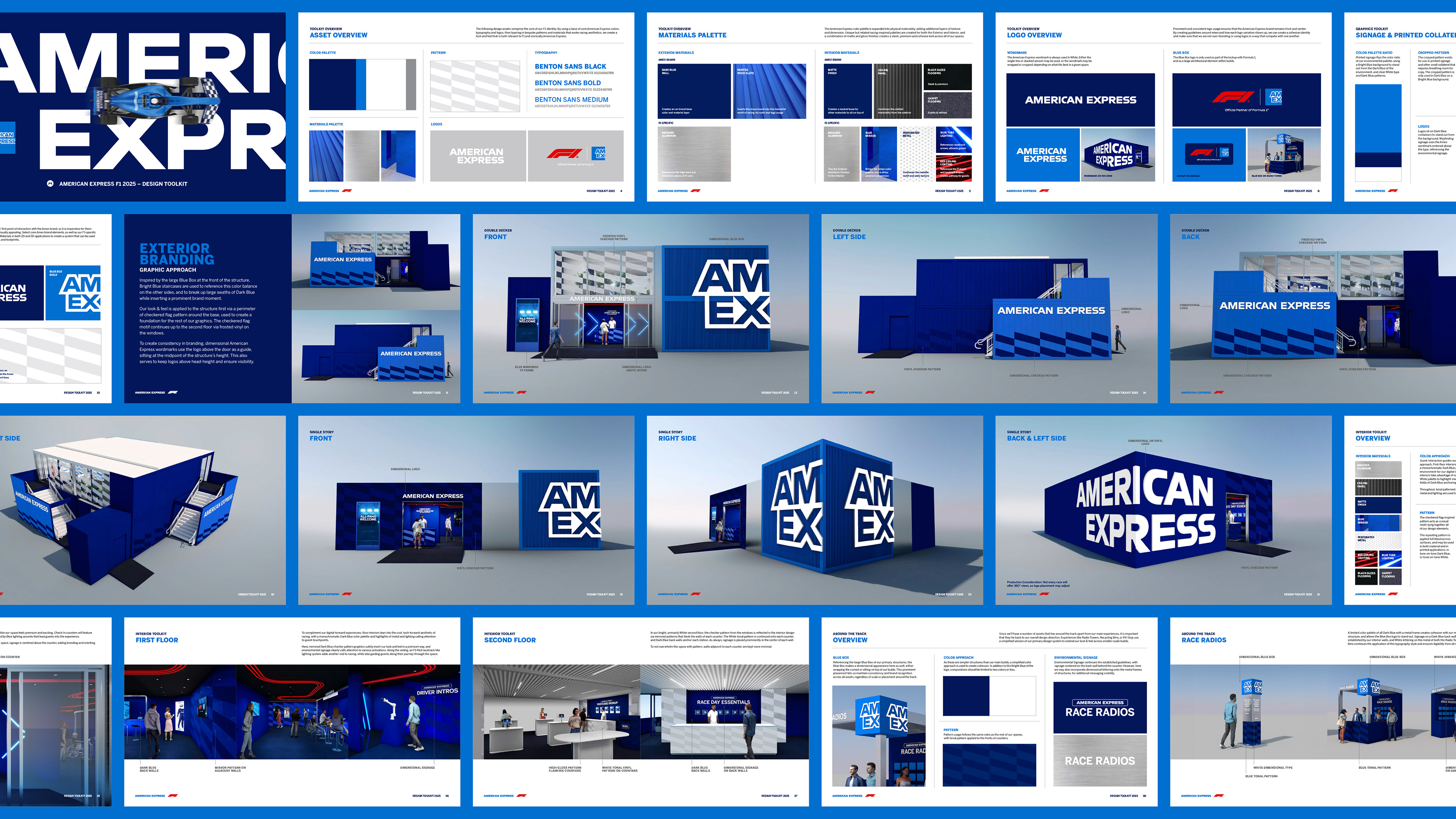 As the Official Payments Partner of Formula 1, American Express has a presence at every F1 race globally – as the design lead on this year-long project, I led the development and implementation of a branding and design system that spanned signage and graphics, as well as spatial design and material usage. In 2025, this system was implemented across 16 races worldwide, with thousands of assets produced in a variety languages.